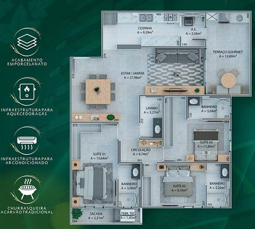 Área Útil86,83m²